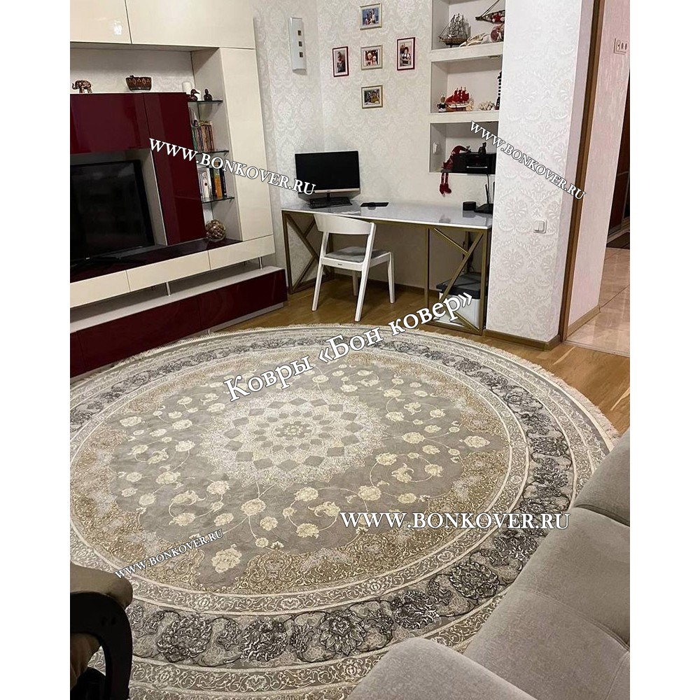 Иранский Круглый Ковер Для Гостиной Арт 30239 станет идеальным дополнением интерьера, оформленного в современном или классическом стиле. Мягкое, но прочное, ковровое изделие обеспечивает тепло- и шумоизоляцию, отличается длительным сроком эксплуатации, пожаробезопасностью, экологичностью и высокой износостойкостью, является отличной гарантией от повышенной влажности в помещении и утеплителем для холодного пола. Благодаря качеству материалов, ковер не деформируется, сохраняет форму под тяжестью предметов мебели. За его поверхностью легко ухаживать.
