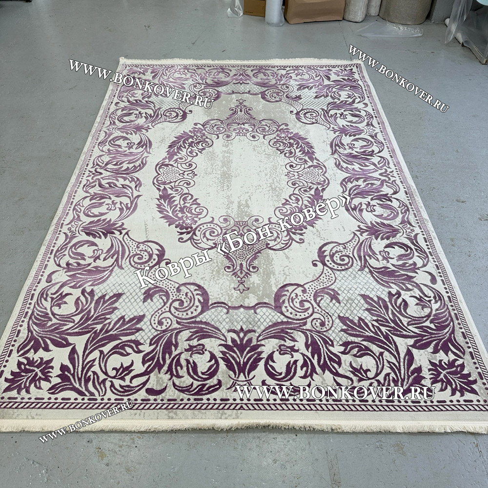 Ковер Медальон Для Гостиной Дизайн 30543 Сиреневый станет привлекательным дополнением интерьера, оформленного в современном или классическом стиле. Мягкое, но прочное, ковровое покрытие обеспечивает тепло- и шумоизоляцию, отличается длительным сроком эксплуатации, пожаробезопасностью, экологичностью и высокой износостойкостью, является отличной преградой от повышенной влажности в помещении и утеплителем для холодного пола. Благодаря качеству материалов, ковер не деформируется, сохраняет форму под тяжестью предметов мебели. За его поверхностью легко ухаживать.