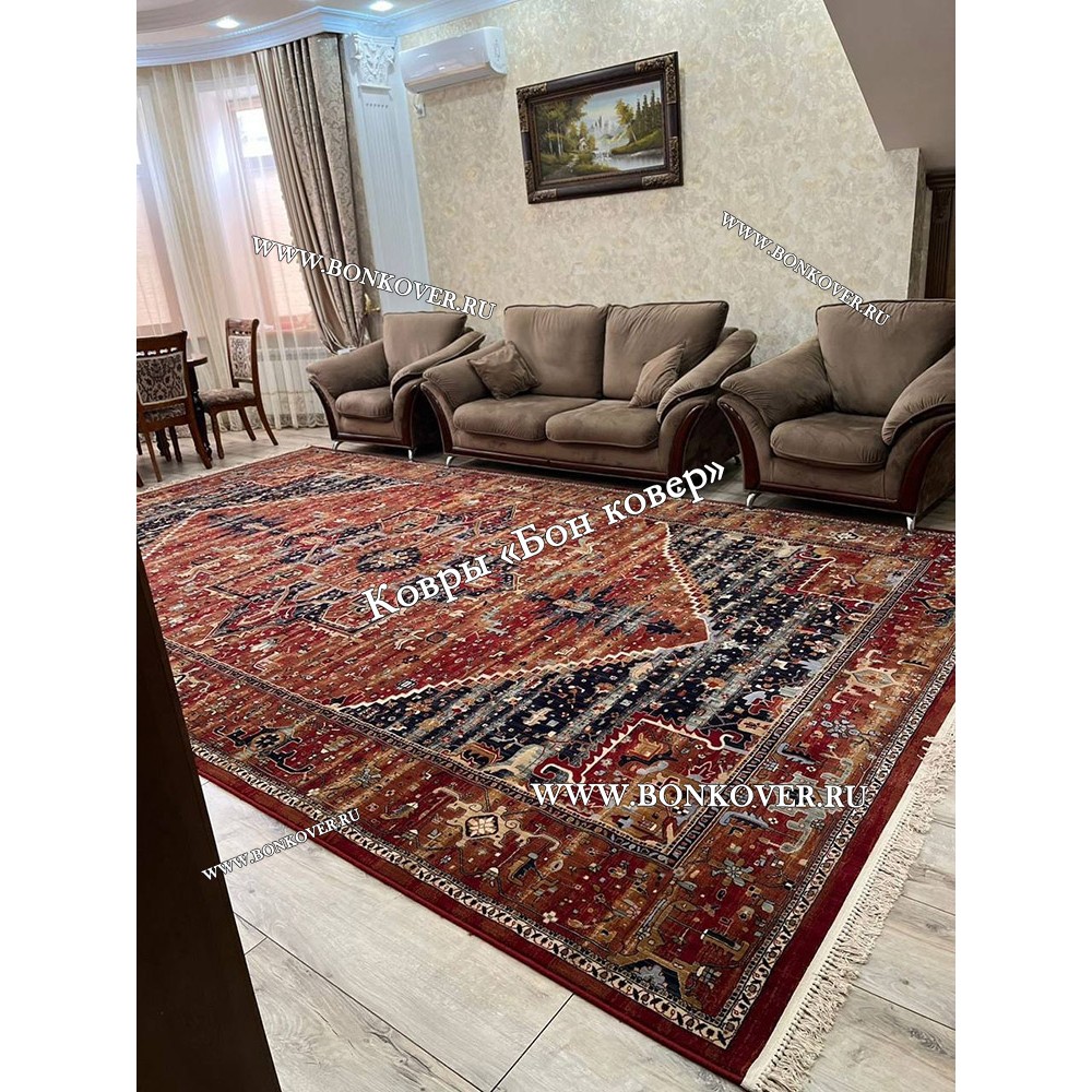16.09.2019 Читать полный отзывКачественный ковер с классическим рисунком. В моем случае идеально вписывается в интерьер комнаты, для которой его заказывала. Полностью соответствует всем указанным в описании характеристикам. Чистится просто, особо загрязненные участки без труда вычищаю при помощи специального средства для ковров ..