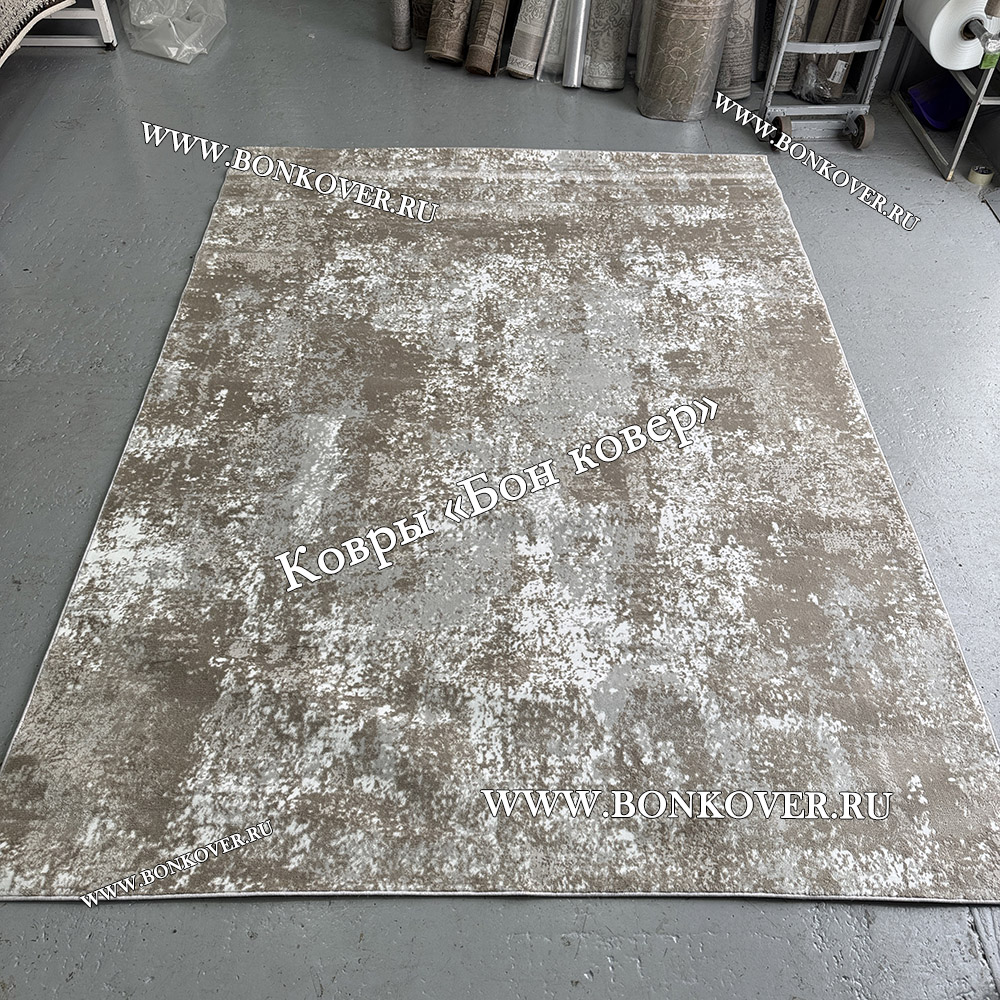 Отличный ковёр, качественный и очень приятно ножкам по нему ходить, без заломов, цвет бежево-серый с оттенком пыльно голубого